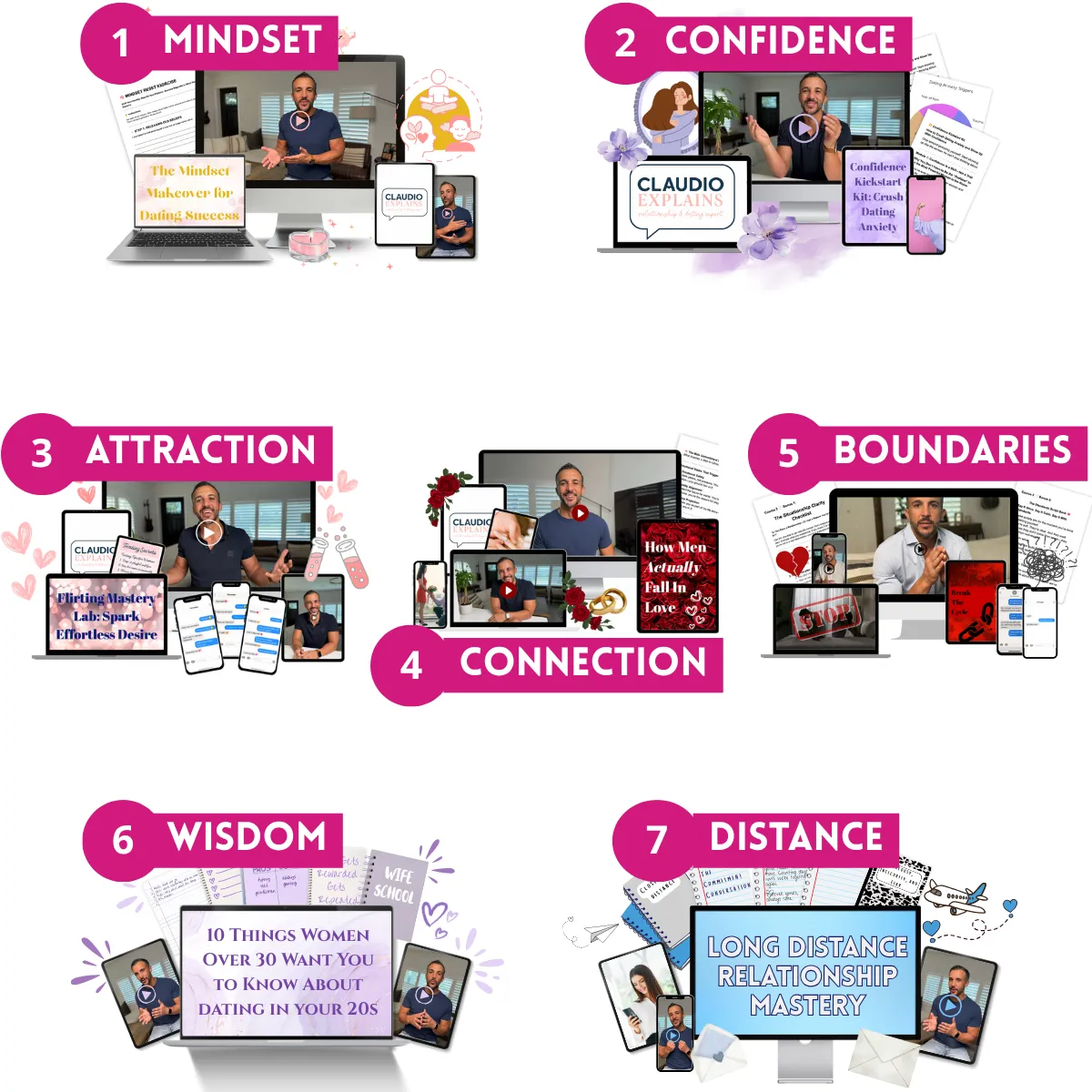 The Dating Mindset Makeover: Ever catch yourself trapped in negative loops, doubting if real love even exists for you after endless disappointments? In this course you will unlock revolutionary insights to reframe your thoughts, banish self-sabotage, and attract the passion you've always deserved. Your mindset revolution starts here. (45-min video + rewiring workbook, worth $97).