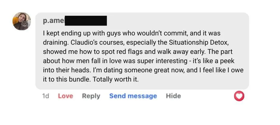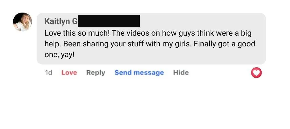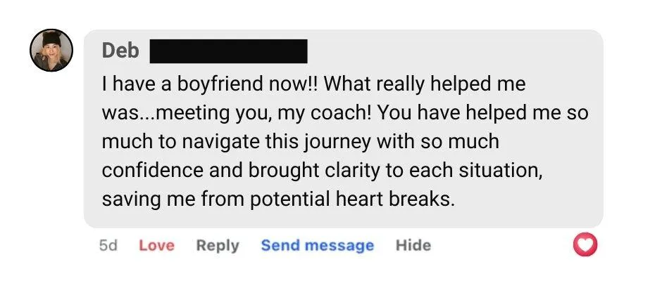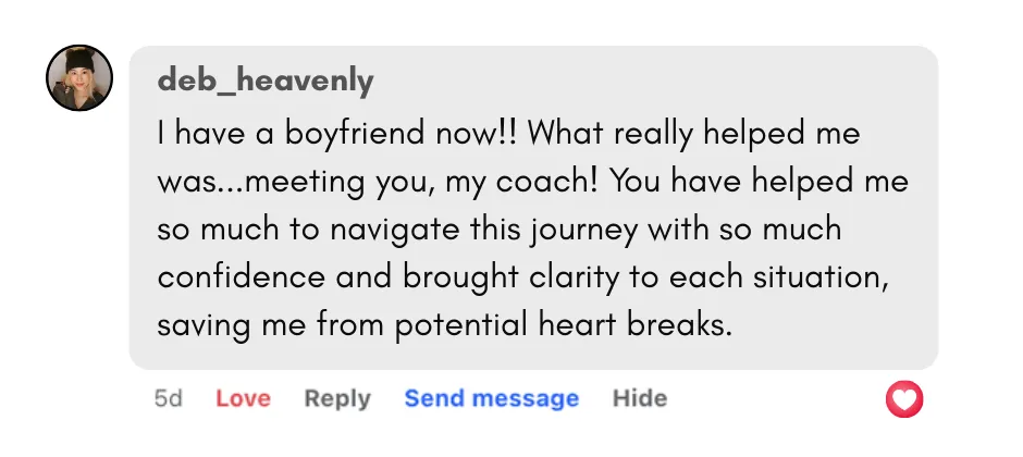 A: Private Coaching is absolutely worth it if you can afford it, but I also know not everyone has the budget for Private Coaching, and I never wanted price to be the reason someone misses out on life changing guidance. That's why I created this group. You still get my strategies, frameworks, and direct coaching on your personal questions, but in a group format that allows me to work with more women at once. This makes it possible to keep the price low without sacrificing the quality. For just $97 a month, you get coaching and clarity that can completely change your love life, at a fraction of what private coaching would cost.